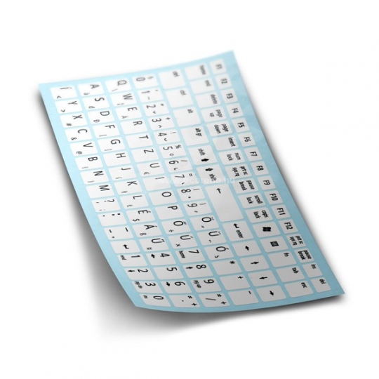 Felület:Matt, anyagában színezett, nem szitanyomott feliratok + Kiosztás:Teljes, 108 gombos layout + Szín:Fehér + Típus:ORACAL Economy Cal 640 matrica
